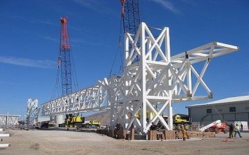 The erection of structural steelwork consists of the assembly of steel components into a frame on site.